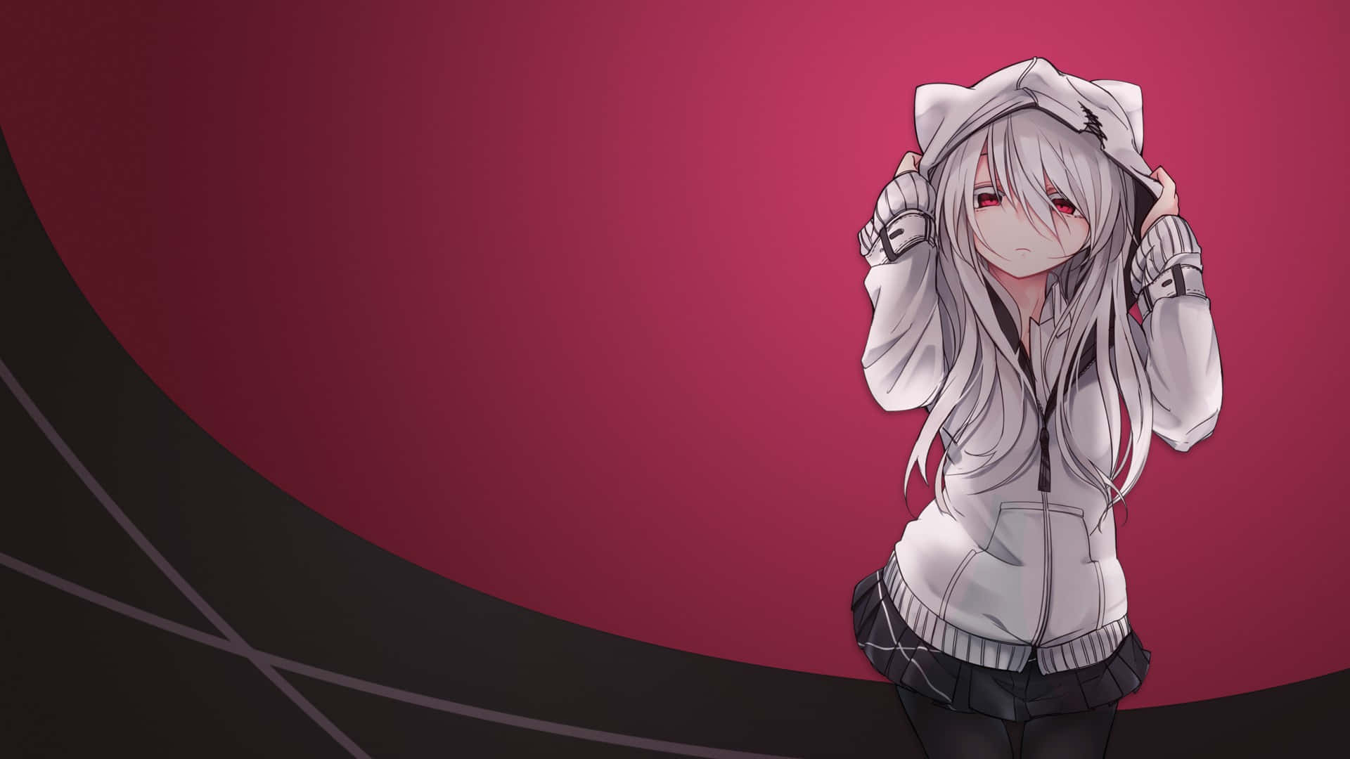 White Haired Anime Girl In Red Dress Backgrounds -