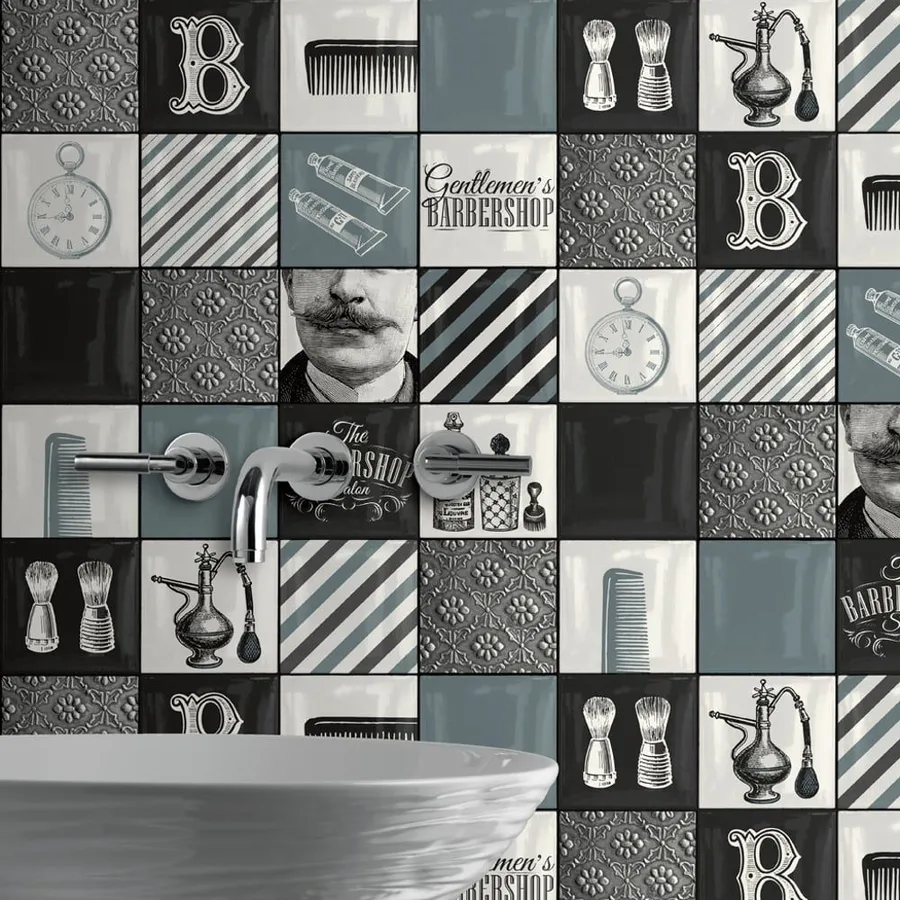 A Bathroom With A Sink And A Tiled Wall