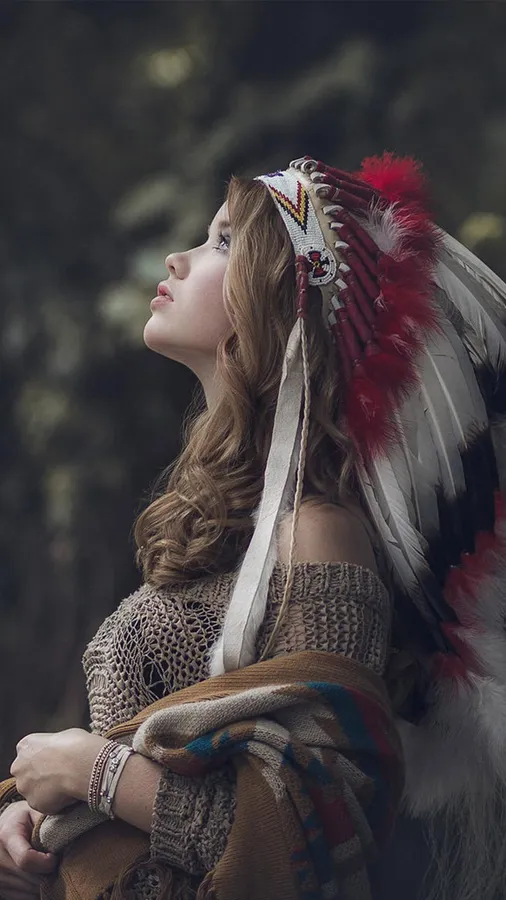 Native Tribal Model Looking Up
